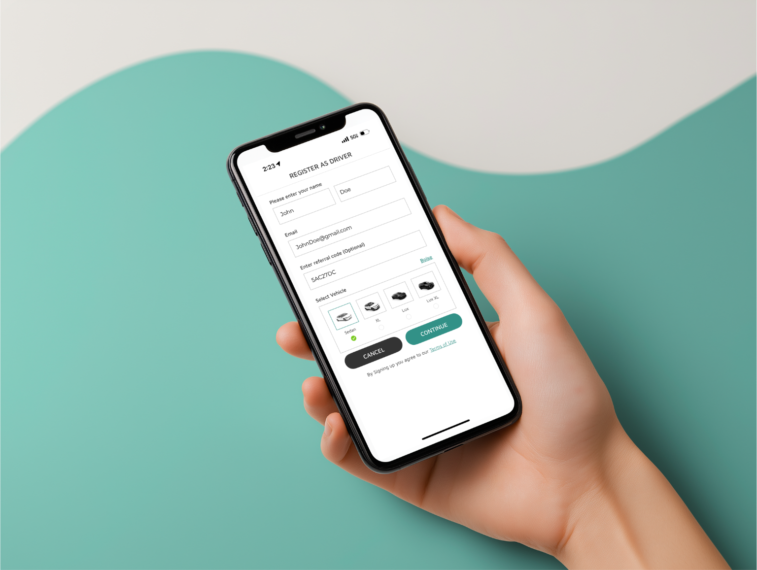 Each new driver can use one referral code during signup. Codes must be entered at registration and can't be changed later.